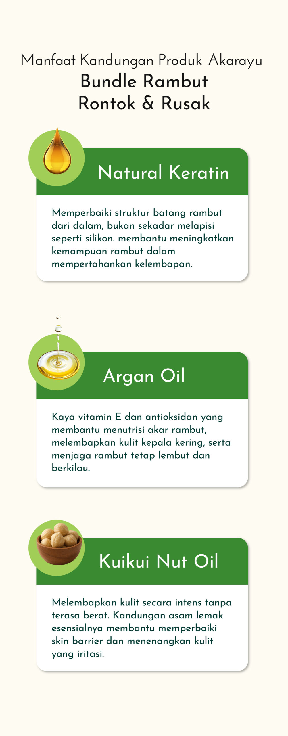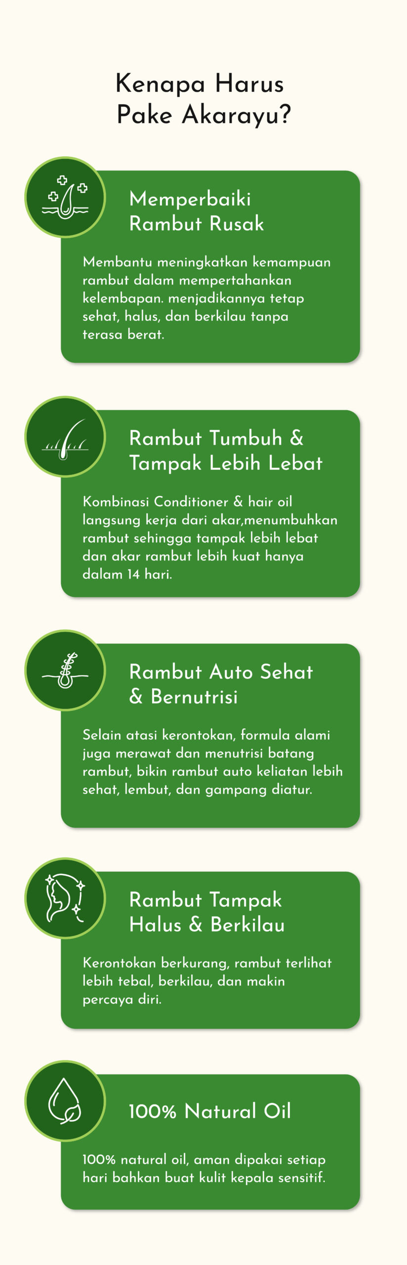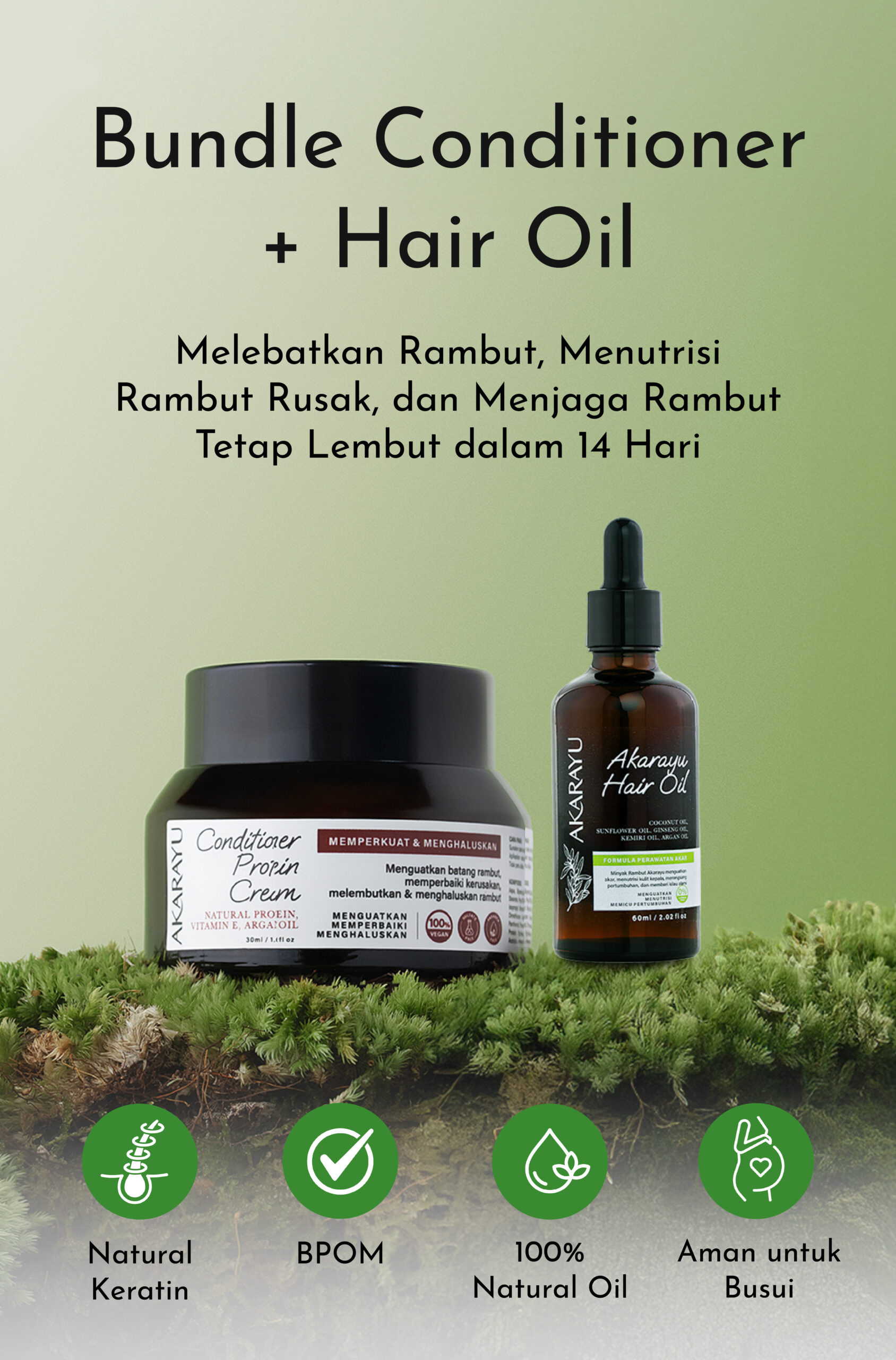 Paket Bundle Akarayu diformulasikan khusus untuk Wanita Hebat sepertimu yang mendambakan Rambut Sehat, Berkilau Alami, dan Bebas Kusut.